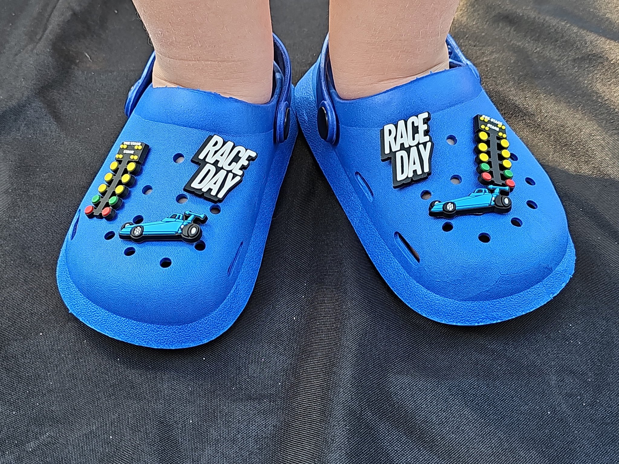 The clogs are breathable, easy to slip on, and made for all-day comfort, while the charms snap in securely to customize the look. Whether it’s everyday wear or a day at the track, this set brings high-speed style wherever they go.